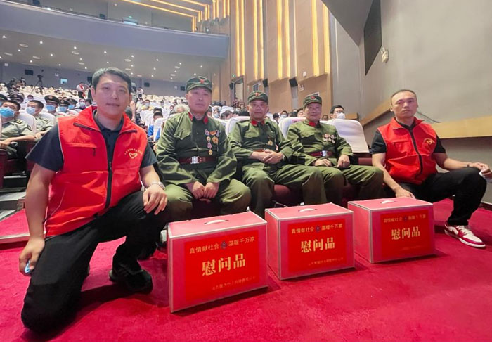 在“濟(jì)寧市慶祝八一建軍節(jié)文藝演出”現(xiàn)場(chǎng),我們有幸見(jiàn)到了濟(jì)寧市抗日戰(zhàn)爭(zhēng)、抗美援朝、對(duì)越自衛(wèi)反擊的戰(zhàn)老兵代表,他們?yōu)榱吮Pl(wèi)祖國(guó),離開(kāi)家園,用滿腔的熱血和堅(jiān)決斗志征戰(zhàn)戰(zhàn)場(chǎng),換來(lái)了我們今天的幸福生活。借此機(jī)會(huì)山東聚源熱力公司組織退伍軍人送去節(jié)日的問(wèn)候和慰問(wèn)品。在與革命前輩們的交談中,我們感受的到戰(zhàn)火紛飛的革命歲月深深地刻進(jìn)他們的腦海里,愛(ài)國(guó)為民的革命初心在他們心中珍藏至今。為了抗擊敵人、保家衛(wèi)國(guó),他們?cè)鴰锥葘€(gè)人生死置之度外,沖鋒在前、毫不退縮。老人們又對(duì)我們年輕一輩寄予厚望,他們講道,現(xiàn)如今祖國(guó)繁榮富強(qiáng),人民安居樂(lè)業(yè),希望你們年輕一輩,接過(guò)時(shí)代的接力棒,銘記永不磨滅的愛(ài)國(guó)精神,在新時(shí)代建立屬于你們的功勛。